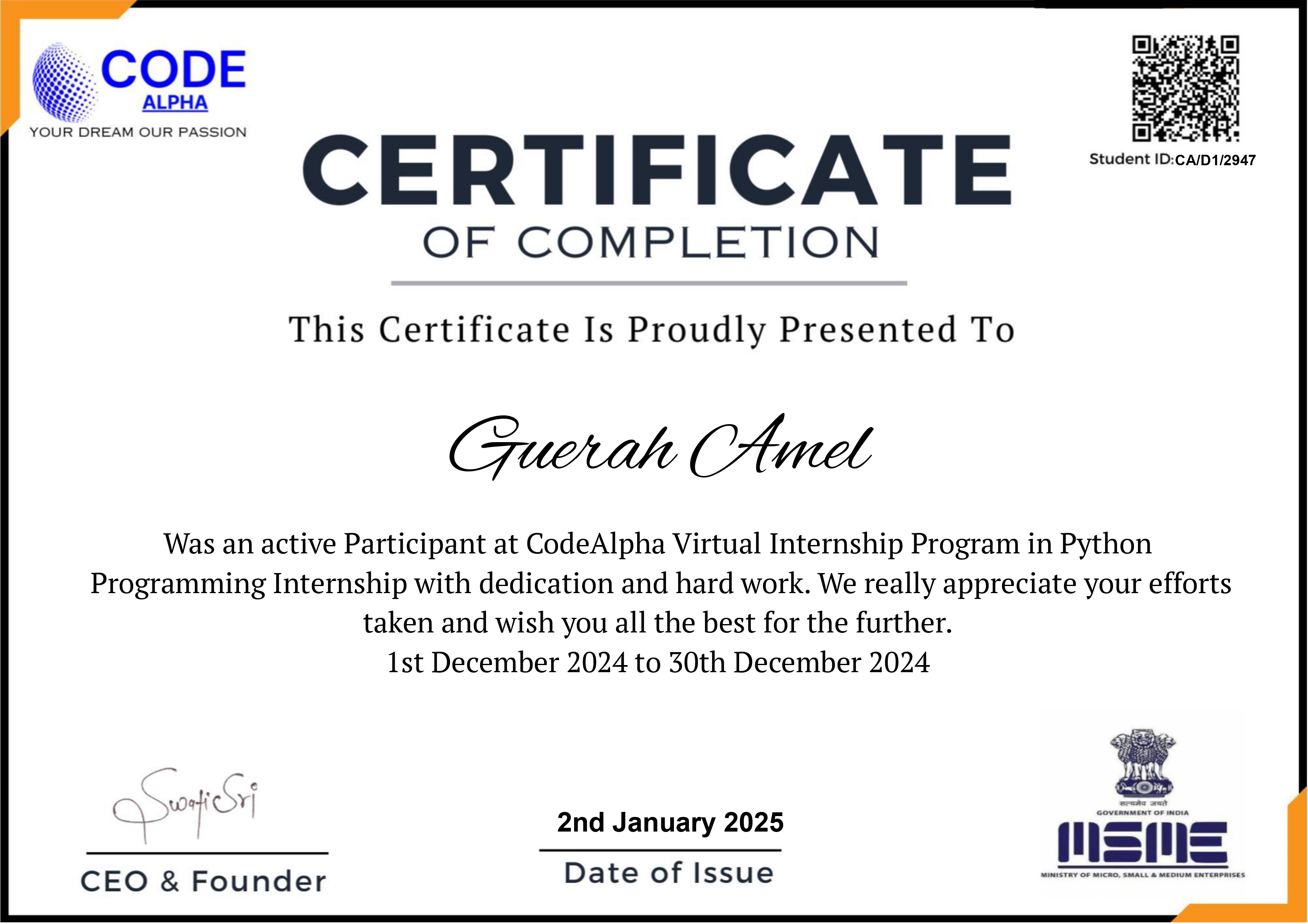 Avec dévouement et persévérance, j’ai transformé mes rêves en réussites — en obtenant mon diplôme avec mention, avec une moyenne de 16,81, ouvrant la voie à un avenir aux possibilités infinies.