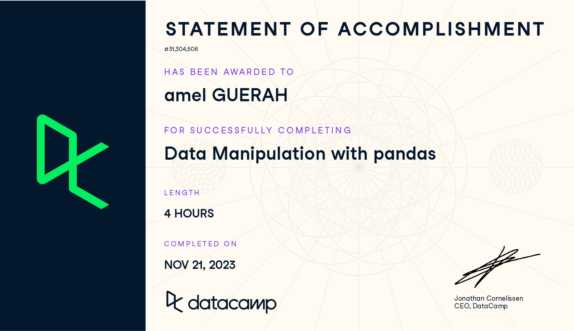 Dans les défis de la vie, je puise ma force. Dans les données complexes, je trouve ma curiosité. Dans les problèmes difficiles, je cultive ma résilience. Dans les moments sombres, je découvre ma lumière intérieure. Dans les projets réussis, je ressens ma gratitude. Et à chaque instant, je vois une opportunité d’être la meilleure version de moi-même.